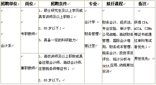 根据学院发展需要,现会计系面向社会公开招聘专兼职教师。具体要求如下: