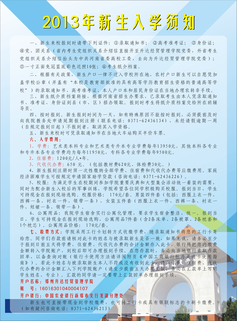 2013级新生入学须知