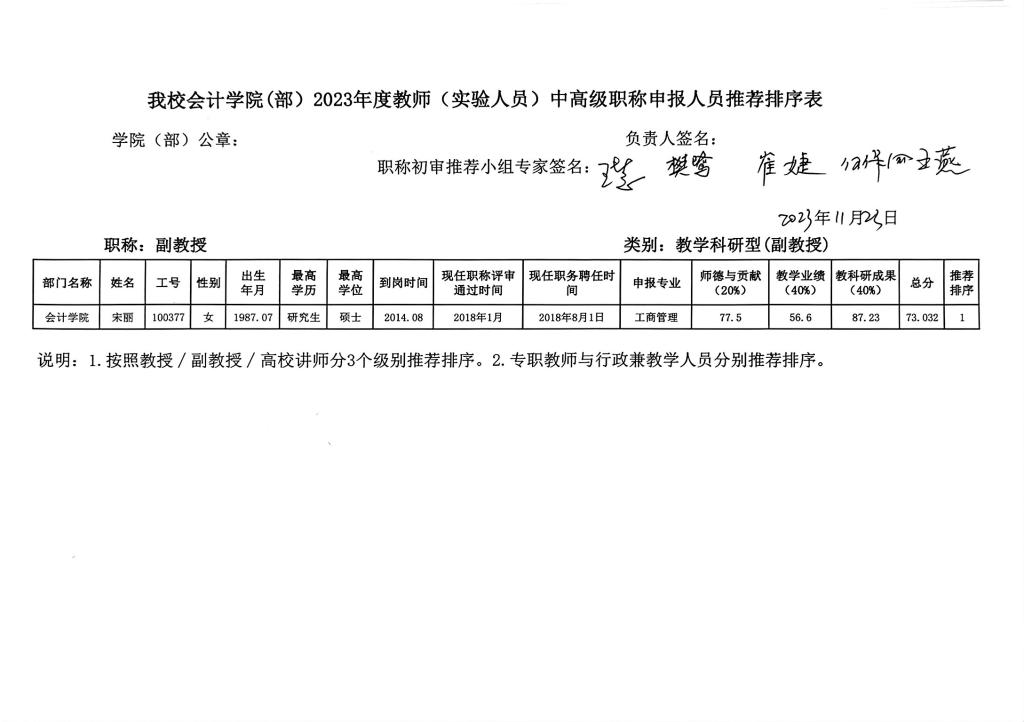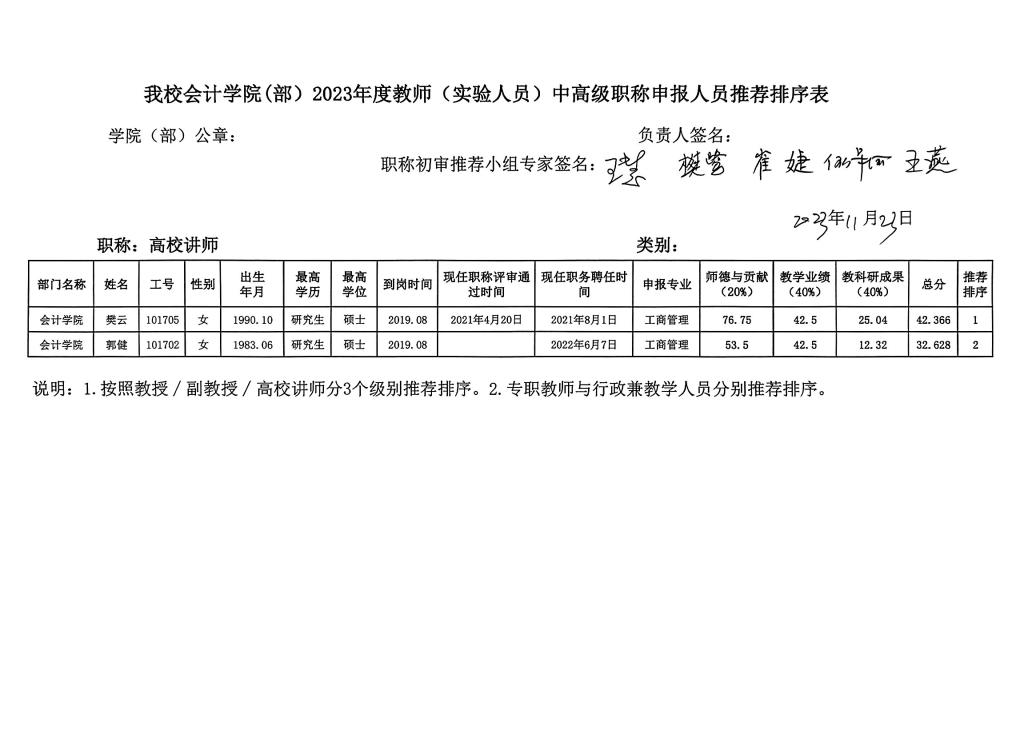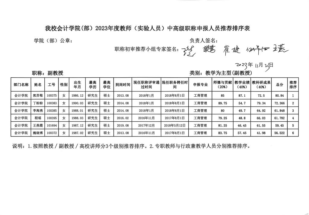 附件 太阳网集团tcy87222023年度教师中高级职称申报人员推荐排序表