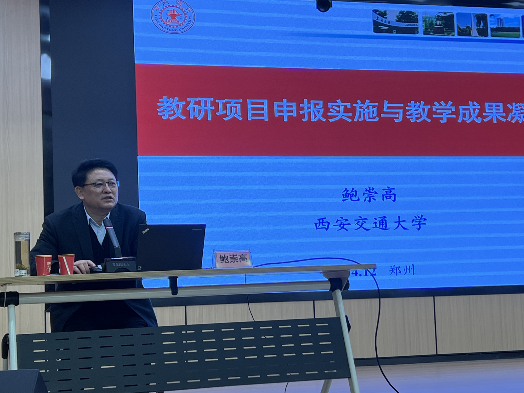 西安交通大学鲍崇高教授做“高校教改项目申报设计及案例分析”的报告。报告内容主要聚焦于教改项目设计如何做到精准教学,如何写好教研项目申报书,以及教研成果的凝练、推广应用,如何突出重点、突出创新等内容。并针对具体范本,予以示范修改。