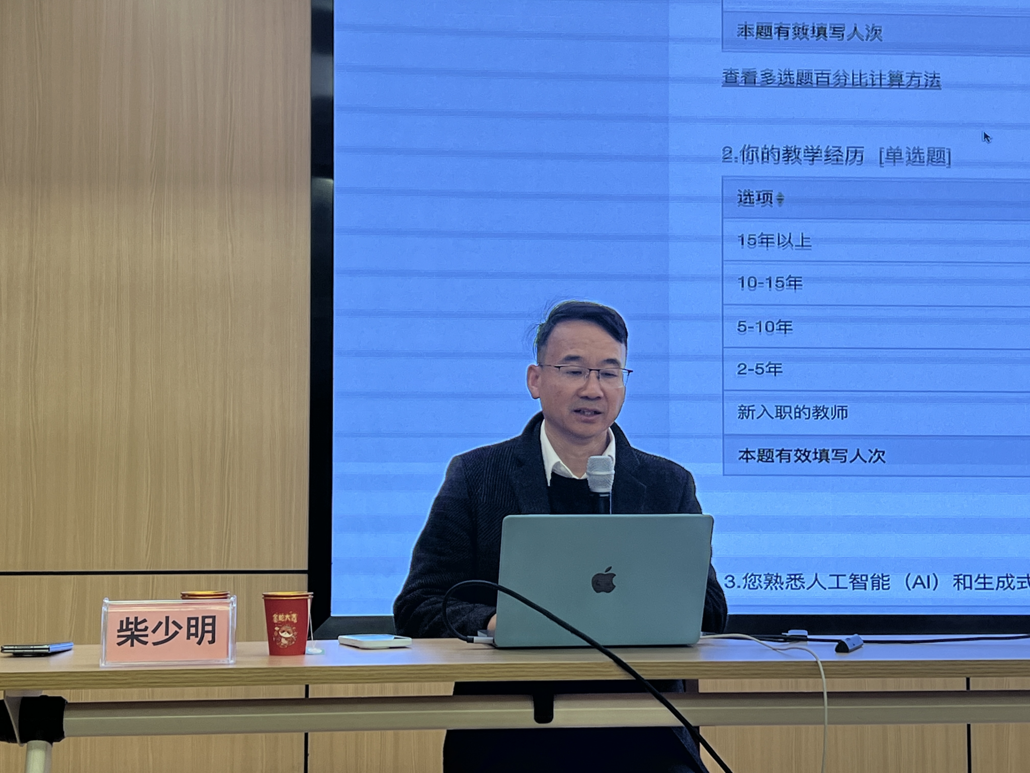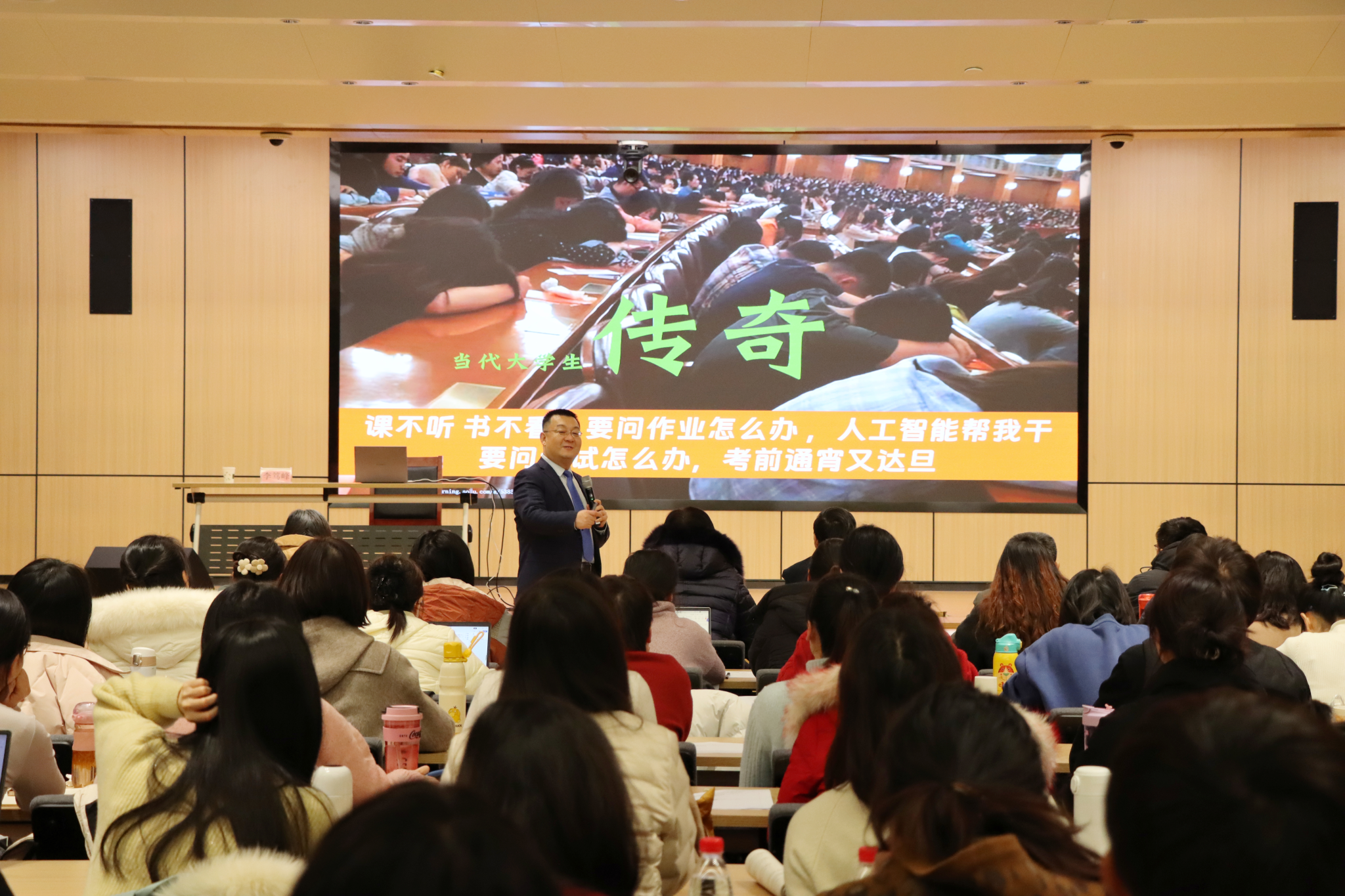华南师范大学柴少明教授做“AI赋能高等教育课堂教学改革与创新”的报告。柴少明教授从教育部助推人工智能赋能教育4项行动、教育数字化转型与教学变革、生成式人工智能教育场景化运用和生成式人工智能课堂教学创新方法等方面给参训教师作了人工智能的理论培训。通过协助教师进行智能备课,课堂教学中如何通过自然语言处理技术展开互动交流,实时解答学生的各类问题,及在课后精准分析学生表现,助力教师及时调整教学策略,实现因材施教,展示了生成式人工智能在教学领域的广泛应用和巨大潜力,为教师们提供了宝贵的实践经验和有益启示。