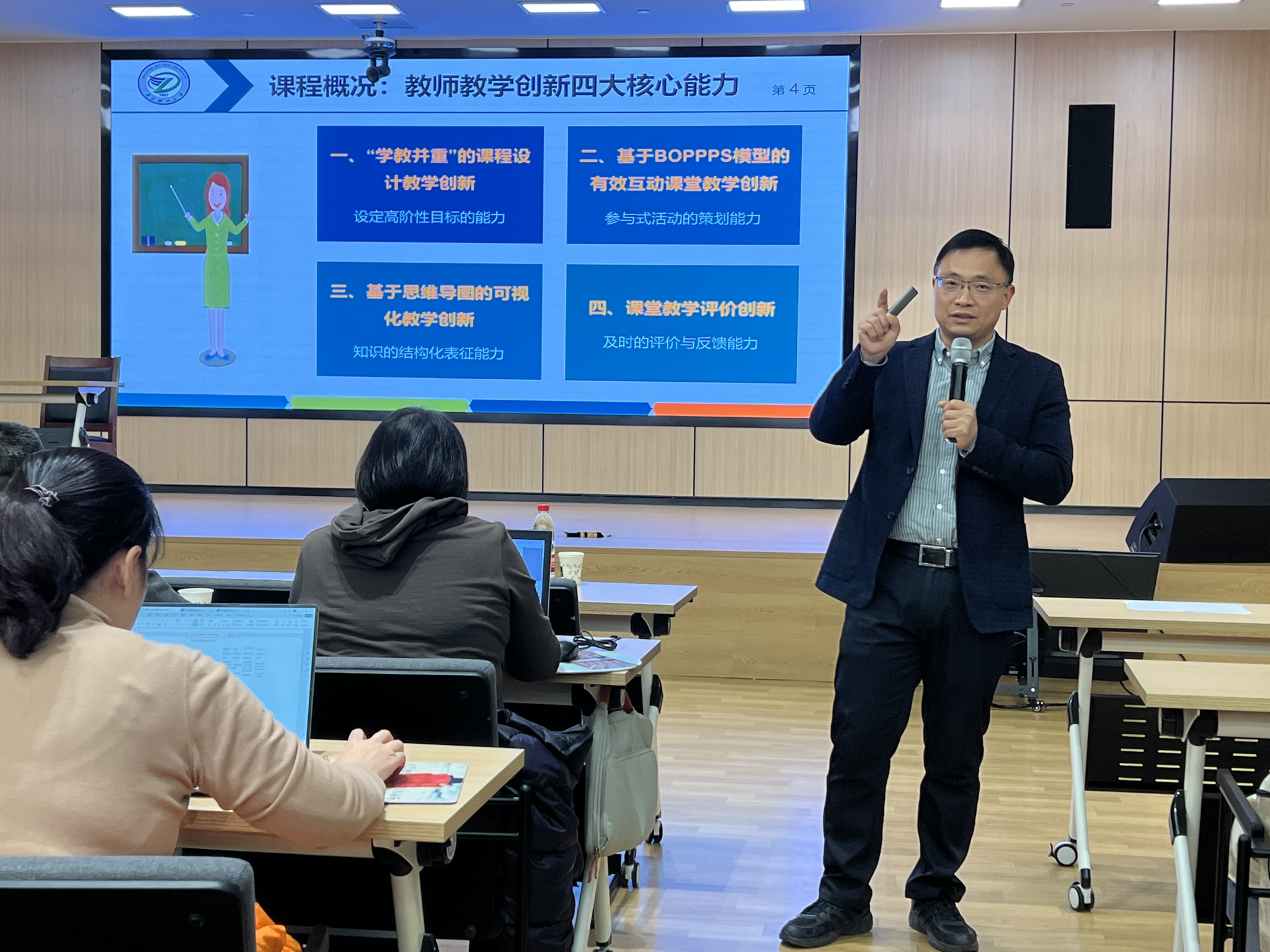 西安欧亚学院李笃峰研究员做“OBE理念下的应用型课程建设与教学设计实施”的报告。报告围绕“OBE的前世今生及与一线教师的关系”“教学改革避坑指南”“以学习者为中心的课程内容解构与重构”“OBE理念指导下的课程大纲要件及编制技巧”及“OBE理念下的教学逆向设计模型”五个方面展开。培训加深了教师对OBE理念下课程建设与教学设计等问题的认识和思考,为深入推进我校课程建设、课堂教学改革、提升课堂教学质量与教学水平指明了方向。