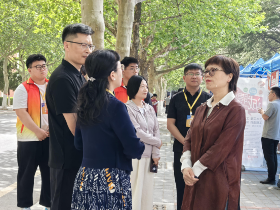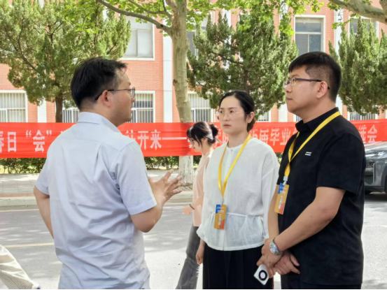 校长张欣教授、就业处处长冯科、就业与校友科科长鲁玲玉等领导在太阳网集团tcy8722党委书记张蕾、行政秘书兼团委书记陈刚和就业专员刘爽的陪同下莅临现场指导工作。
