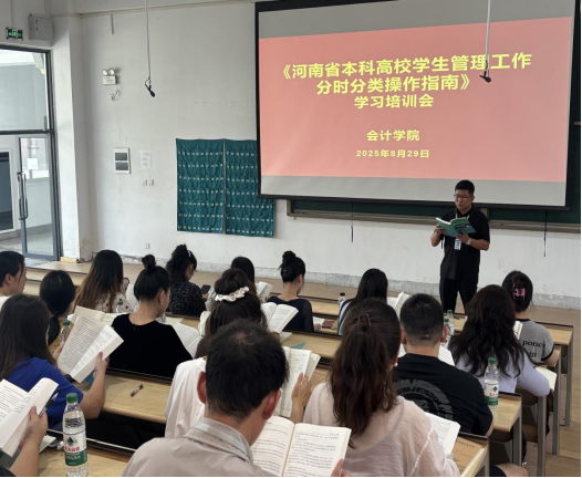 接着,陈刚副书记对《河南省本科高校学生管理工作分时分类操作指南》进行详细解读。他结合学院学生管理工作实际,从学生日常教育、学业指导等多个方面,深入剖析指南中分时分类管理的具体要求和操作方法,强调要依据学生不同阶段、不同类型的特点,精准施策,做好学生管理服务工作。