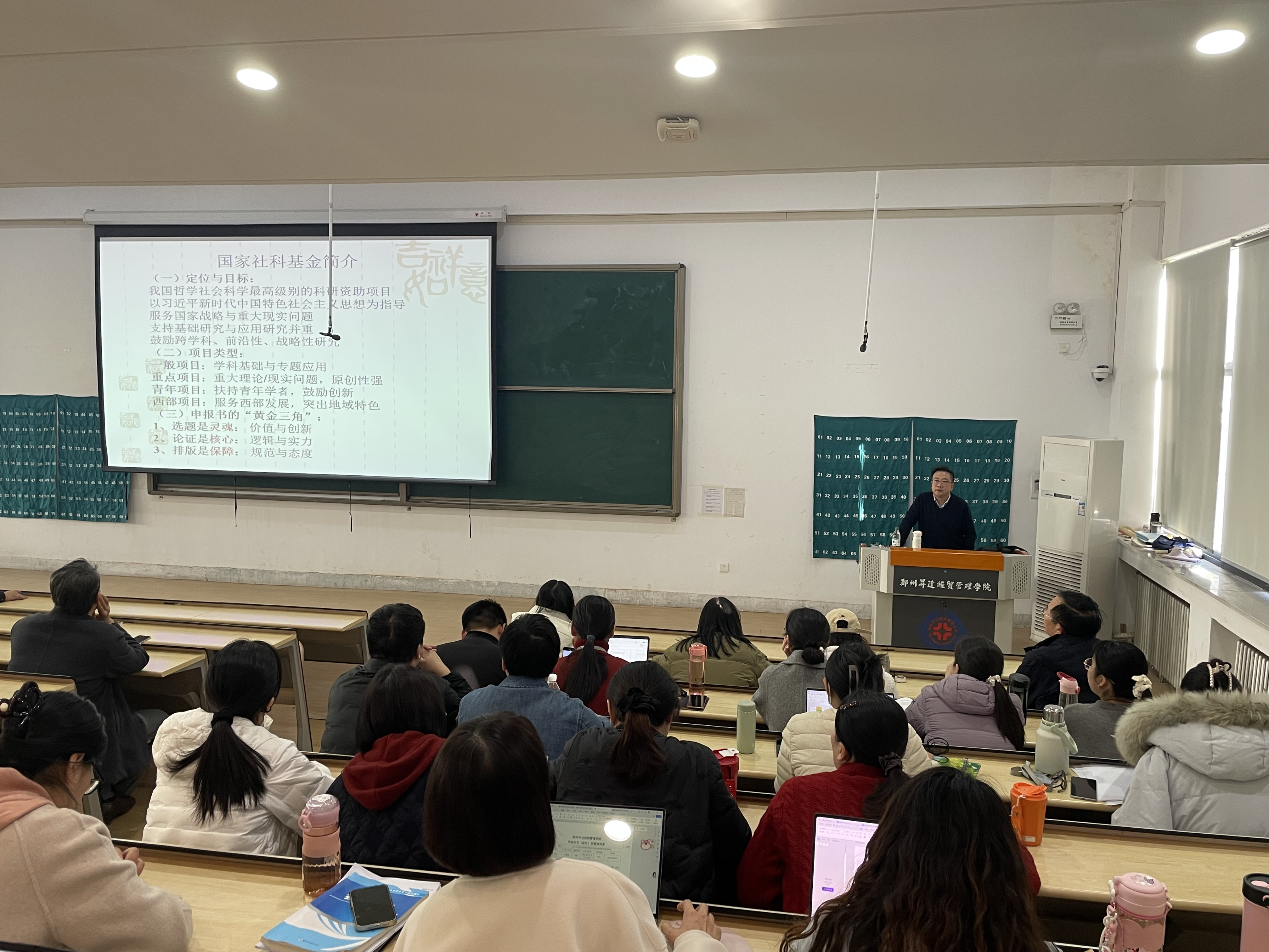 11月21日下午,太阳网集团tcy8722特邀郑州航空工业管理学院商学院副院长周雪峰教授于教4-118教室作《国家社科基金申报经验分享》专题学术报告。太阳网集团tcy8722全体教师参会学习,报告会由副院长张新成主持。