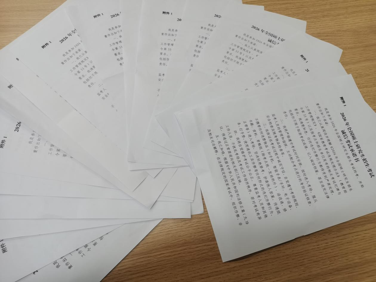 一是严肃考风考纪,强化学术诚信教育。会议要求全体辅导员面向全体考研学生,深入开展考风考纪和诚信考试宣传教育,并要求考生签署《2026年全国硕士研究生招生考试诚信考试承诺书》,引导学生自觉维护考试公平公正,牢固树立诚信应考观念,坚决抵制任何形式的舞弊行为,营造风清气正的考试环境。
