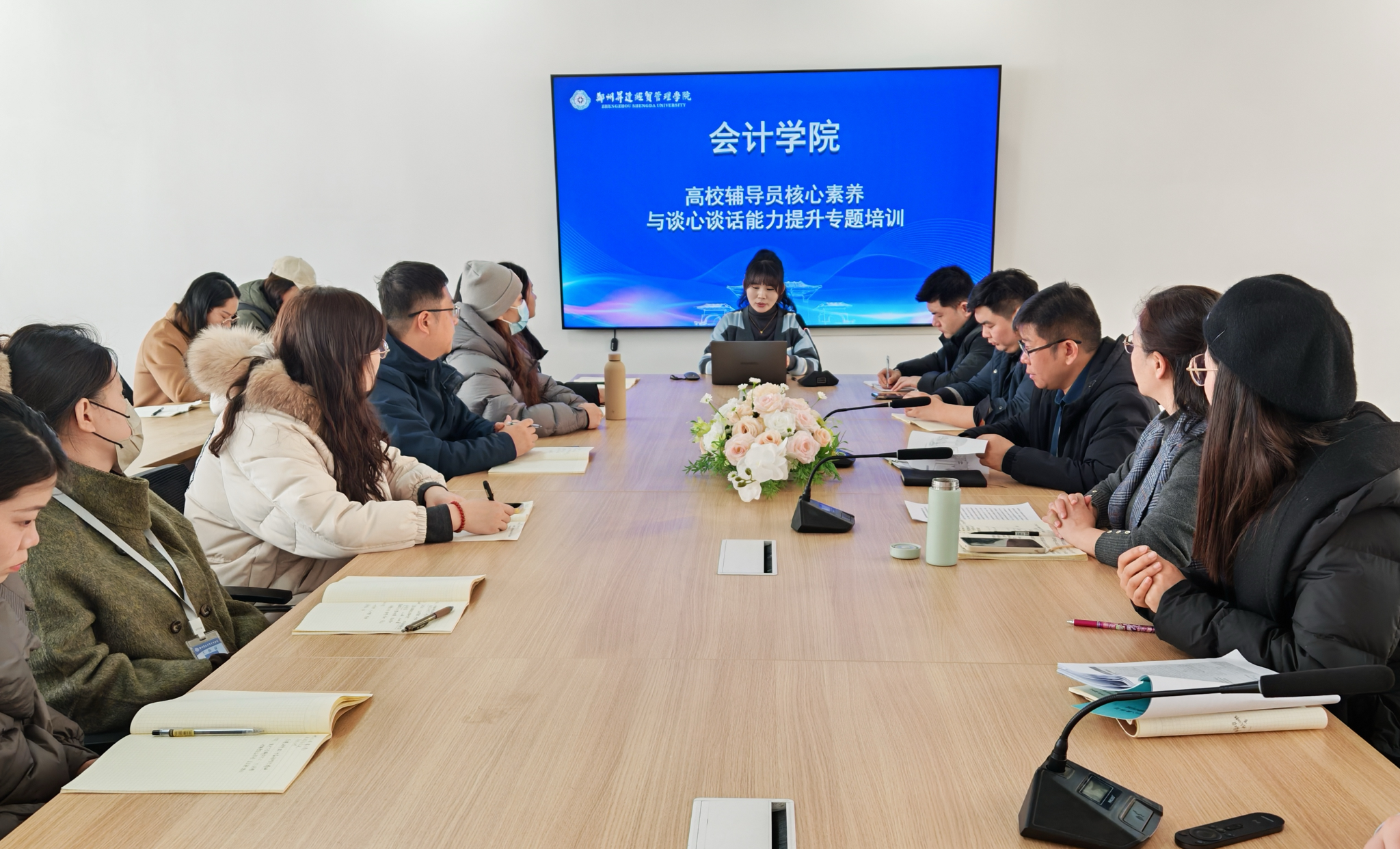 12月19日上午10:30,太阳网集团tcy8722在教学四号楼209会议室举行“高校辅导员核心素养与谈心谈话能力提升专题培训—辅导员核心素养能力提升”专题培训。刘瑞雯老师将前期赴哈尔滨参加的“高校辅导员(班主任)核心素养与谈心谈话能力提升专题培训”精华内容与一线经验深度融合,针对辅导员核心素养“四大策略”模块展开了系统讲解,为辅导员配齐“思想引领、情感共鸣、危机处置、数字赋能”四项核心装备。