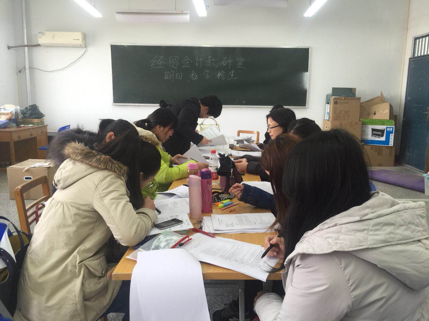 3月2日,经贸会计教研室在综合楼405开展期初教学检查。教研室内同仁通过自查和互查的方式,检查自己的教学资料,包括教学大纲、进度表、教案、PPT等上课必备资料。