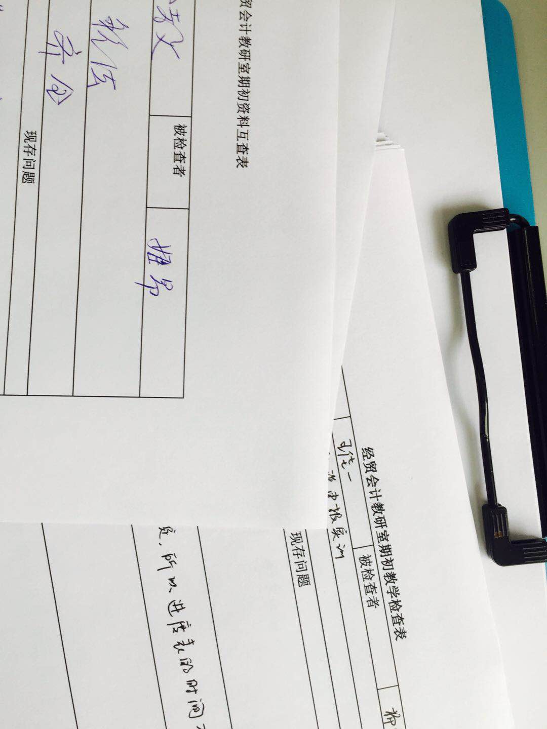 通过一上午的检查,各位同仁不仅发现了自己的错误,也帮其他同仁找出了教学资料上的瑕疵和错误,在教学检查中反思自己在教学方式和教学设计方面需要提升的地方,并填写了期初资料互查表。