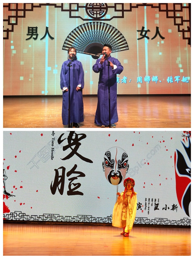 晚会在爱乐社乐队演奏的《夜访吸血鬼》中拉开序幕。同学们热血沸腾、欢呼声、鼓掌声此起彼伏,随后舞蹈《大鱼》再次将全场气氛带起。由祁琳带来的《我喜欢上你时的内心活动》带领我们走进了精彩的音乐殿堂。龚奕文、杨棋凯带来的小品《你好,李焕英》融合多重元素,诙谐幽默的语言和独特表演风格赢得阵阵掌声。周娜娜、张军舰带来的相声《男人女人》也增加了同学们高涨的热情。王芳、方琪等人朗诵《以青春的名义宣誓》慷慨激昂、震撼人心。随后由张紫菱、李安楠带来的话剧《无悔青春》让大家看到大学生活十年之后的样子,警示我们要在大学中努力学习,不要懒怠,让十年后的自己不会因为今天的决定而后悔。同时也充分表现了太阳网集团tcy8722学子积极向上的精神面貌。