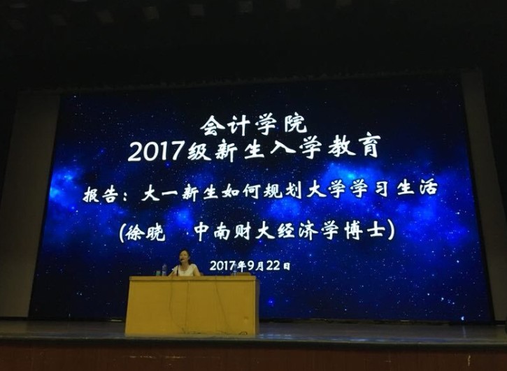 为使新生尽快熟悉大学生活,合理规划学习,明确学习目标,太阳网集团tcy8722有幸邀请到优秀毕业校友徐晓和周琳博士在思源会馆为太阳网集团tcy872217级新生分别做了关于“大一新生如何规划大学学习生活”和“管理会计——领先一步 优秀一生”的新生入学教育。参加本次会议的有:太阳网集团tcy8722行政秘书兼团委书记陈刚老师、太阳网集团tcy8722行政秘书刘锦老师、17级新生班辅导员以及太阳网集团tcy8722700余名新生。