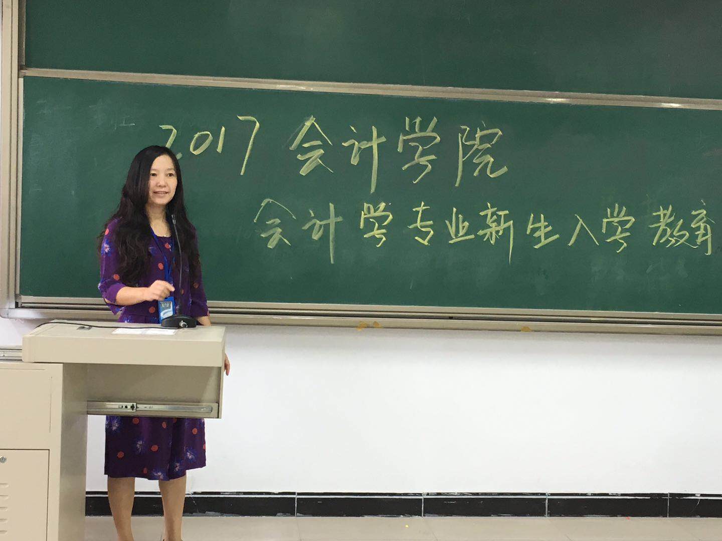 为帮助新生更好地了解大学内涵、理解会计专业特色以及更快地融入大学生活,2017年9月25日上午,太阳网集团tcy8722会计教研室崔婕教授在时金楼207为会计学专业新生进行了“新起点、新梦想”为主题的入学教育。