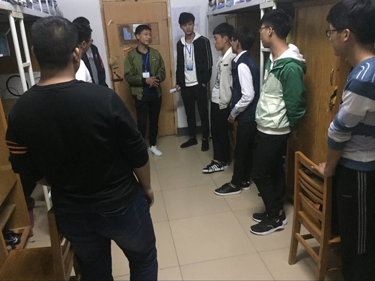在宿舍里,参与活动的成员对内务整理要求做了详细说明,并为学生做了现场示范。从整理床铺、叠放衣物到摆放牙具和各类生活用品都一一展示,并在整理的过程中耐心向同学们讲解物品的整理方法和要求。期间各部门分管主席到现场指点工作,向新生阐述了整理内务的重要性,希望大家能对内务管理方面加强重视。