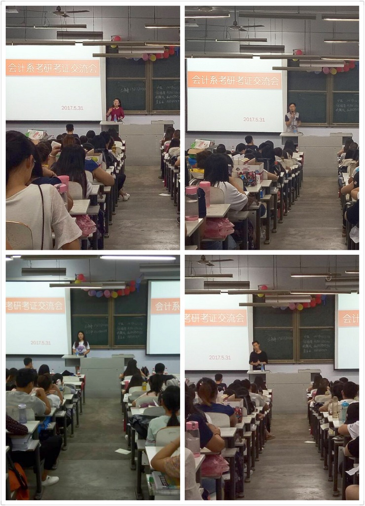 为传承会计系优良学风,帮助学生树立明确的目标。5月31日晚6:30,由会计系团委主办、学艺部承办的会计系“考研考证交流会”在教学一号楼108教室如期举办。参加本次交流会的有:13级审计本科1班邓佳、13级会电本1班张福贵、13级会本11班代解放、13级会本14班查亚兰、13级会电本1班王永平、13级涉会2班古丁伊、13级涉会2班李亚、13级会本1班李鑫达、13级会本6班杨金、09届涉会本科2班熊健、10届优秀毕业生王大千以及会计系部分学生代表。
