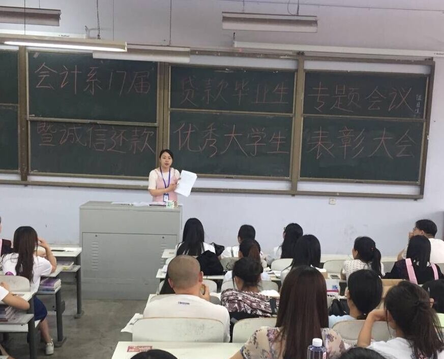 2017届毕业生本周开始办理毕业离校手续,尚有部分贷款学生未还清国家助学贷款,为确保我系助学贷款工作的正常开展及良性循环,会计系于毕业典礼当天在会计一号楼108教室召开了“会计系2017届贷款毕业生专题会议”暨“诚信还贷优秀大学生”表彰仪式。