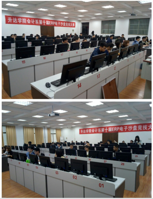 2017年4月27日在商管楼218进行了“会计系第十届ERP电子沙盘竞技大赛”的预赛。比赛中,同学们充分发挥团体合作精神,熟练运用自身掌握的财务、企业运营管理知识和技能。经过激烈角逐,共10组选手最终晋级决赛。