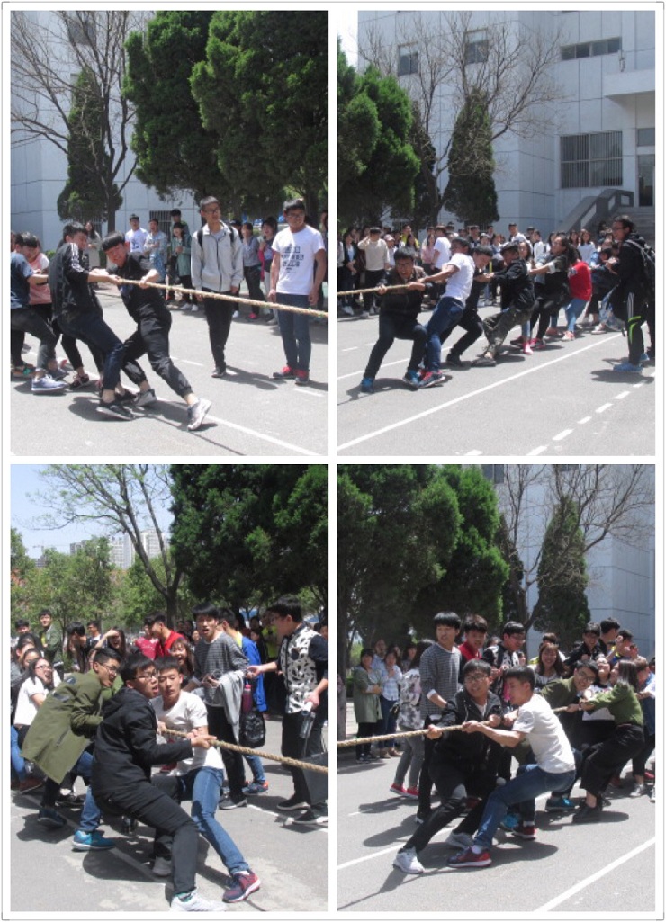为丰富大学课余生活,促进同学之间的交流,发扬团队精神,增强凝聚力。4月17日-19日,由会计系团委学生会主办的会计系团学会第六届拔河比赛在体育馆北门羽毛球场拉开帷幕。经过初赛和复赛,4月19日中午12:10,迎来了最后一场激动人心的决赛。出席本次比赛的有: 会计系行政秘书兼团委书记陈刚老师,会计系团委副书记安琪、学生会主席安焱焱、社联理事长林佳波,副主席常程、副主席邵鑫鑫及各部门参赛同学。