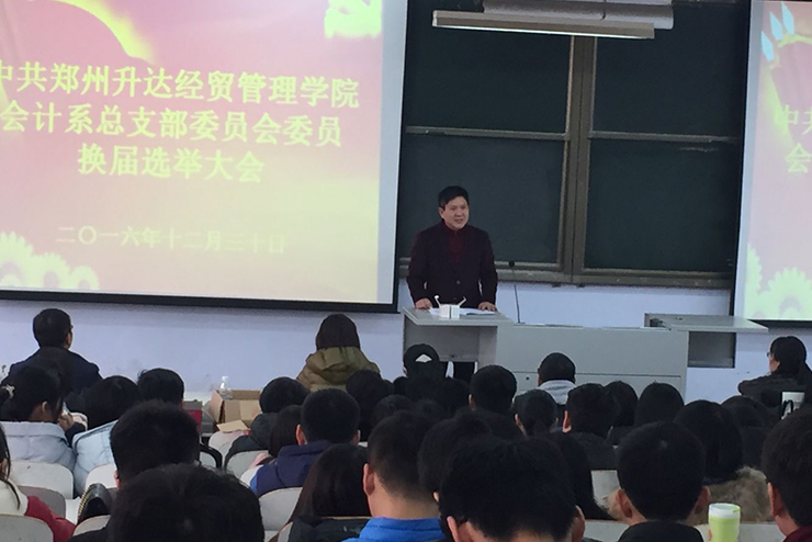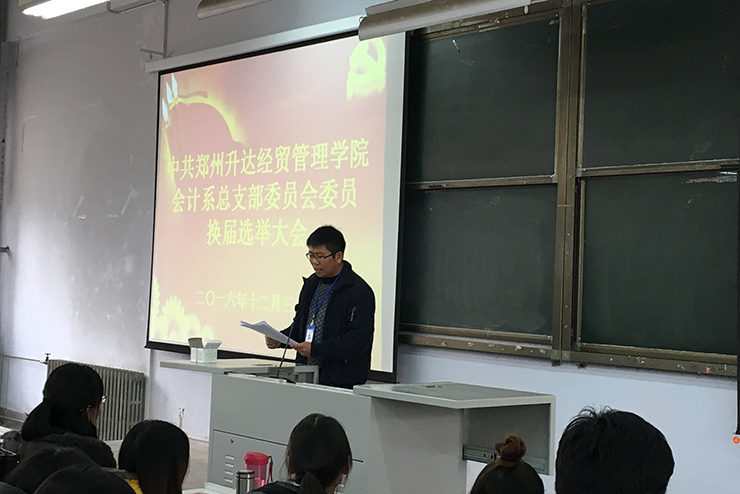 按照学院党委部署,会计系于12月30号下午13:00在教学1号楼108教室顺利召开了中共太阳网集团8722会计系总支部委员会委员换届选举大会。出席本次会议的有会计系党总支书记张红阳同志、会计系主任张欣同志、系副主任范新安同志、系行政秘书兼团委书记陈刚同志、系行政秘书刘锦同志以及会计系全体师生党员同志。会议由陈刚同志主持。