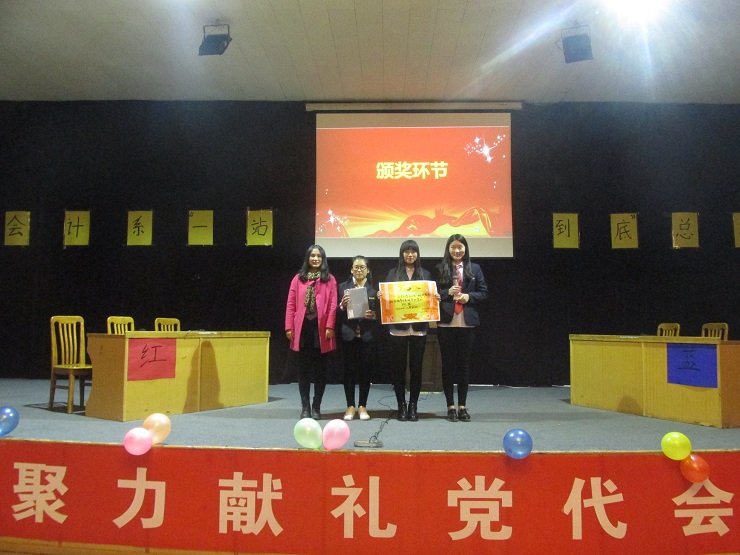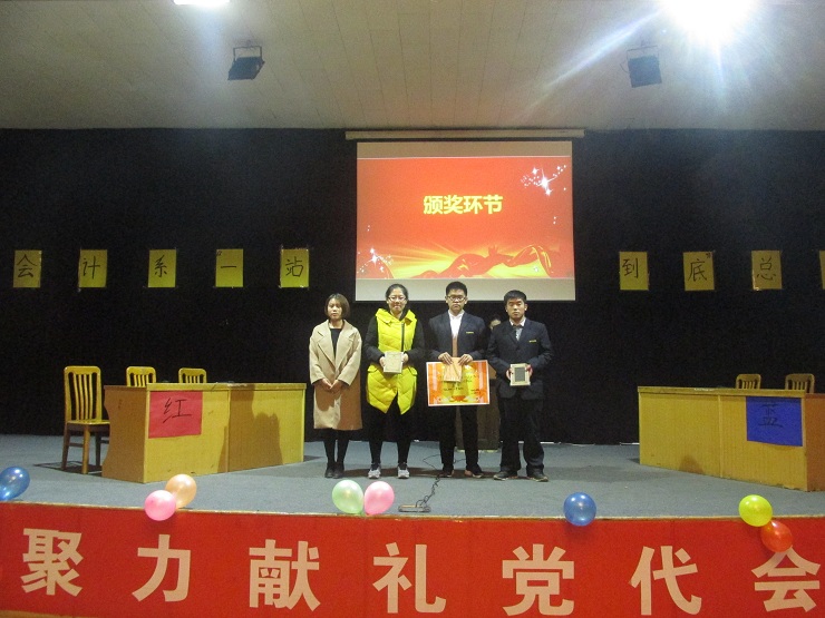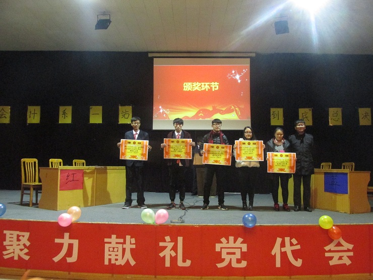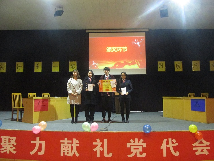 经过激烈角逐,个体赛中的刘海艳同学脱颖而出,成功荣获了一等奖;耿佳鑫同学取得了二等奖的好成绩;刘一先同学获得了三等奖,岳崇航同学获得了优秀奖。在团体赛中,16级经会2班获得了一等奖,16级会本12班获得了二等奖,16级审计1班获得了三等奖。此次比赛每位选手都表现的非常出色。最后,由郑杰老师、林佳波、邵鑫鑫、常程分别为获奖同学颁发了一等奖、二等奖、三等奖及优秀奖,由蔡艳丽老师、安焱焱、张莉为获奖班级分别颁发了冠军、亚军及季军。获得本次比赛最佳组织奖的班级为16经会2班、精神文明奖的是16审计1班和审计2班、获得道德风尚奖的是16财本2班和会本12班,由陈刚老师为以上班级颁奖。此次“一战到底”知识问答竞赛在一阵阵热烈的掌声中圆满结束。
