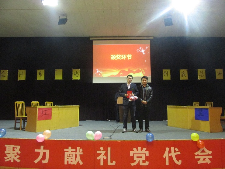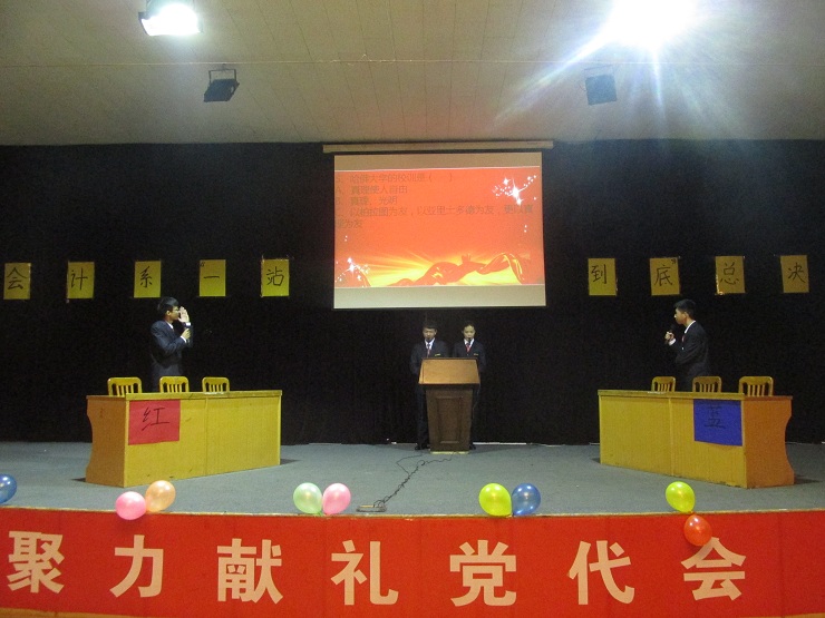 为了丰富大学生活,培养同学们积极参与的热情和团队合作的意识,深入学习党团知识,促进校园文化气氛。11月28日晚上6:30,会计系于龙湖报告厅举办了“一站到底”知识问答竞赛,出席本次活动的嘉宾有:会计系行政秘书兼团委书记陈刚老师,16级辅导员郑杰老师、蔡艳丽老师,学生会主席安焱焱,社联理事长林佳波,副主席常程、邵鑫鑫、张莉以及16级的小石榴们。