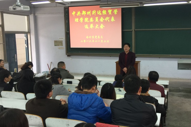 会议开始,党总支委员、行政秘书兼团委书记陈老师首先介绍了本次会议的流程和注意事项,接着,在外培训专程赶回来参加会议的会计系党总支书记张红阳同志发表讲话,他强调此次会议对学院的政治建设和未来发展具有里程碑的意义,他要求会计系全体党员同志高度重视,严肃认真的对待本次选举,要公平公正的投出自己神圣的一票。随后陈刚老师依次介绍了提名的17位党代表候选人的名单及基本情况,并强调了选举要求及注意事项,同时由会计系党建中心助理将选票分别发送至各位党员同志手中,全体党员严格按照选举工作要求,遵照代表条件,以无记名投票方式进行了投票,确保了选举工作的严肃性和有效性。投票结束后进行了公开唱票,最后顺利选举出14名我系党员代表。