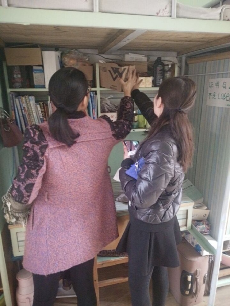 检查过程中,17号楼管理员老师积极配合、协助开展工作,以便检查组深入每个宿舍,对宿舍插座使用、宿舍杂物堆积、私拉乱扯电线等可能存在的安全隐患进行了仔细排查,并对宿舍违章电器的情况进行重点检查。经过认真排查后,未发现学生使用违章电器现象,学生宿舍整体状况令人满意,宿舍干净整齐。但是也发现个别宿舍内务整理相对较差,物品摆放不够整齐,需进一步强化。