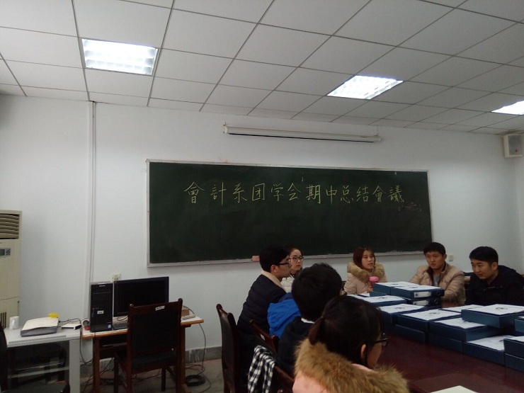 只有不忘初心,才能更好的秉持信念走向远方。为了促进团委学生会的发展,更好的为会计系师生服务,11月22日中午12:10,会计系团委学生会于教学一号楼114会议室召开了期中总结大会,会计系行政秘书兼团委书记陈刚老师、团委副书记安琪、学生会主席安焱焱、社联理事长林佳波等主席团成员及各部门部长参加了此次大会。
