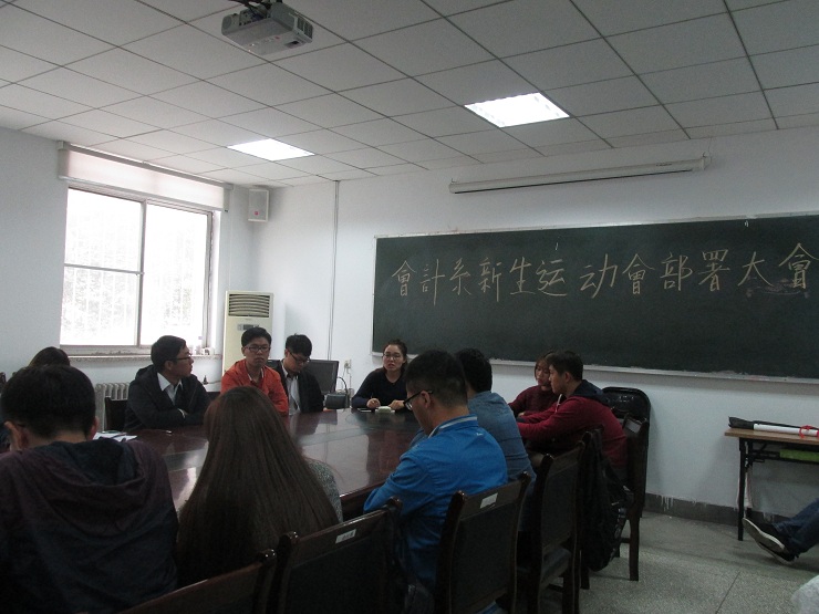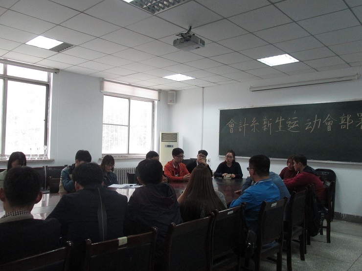 会议开始后,首先由陈刚老师讲话。陈刚老师就本届新生运动会的工作进行了总体部署,并强调了各部门的工作职责和着重的方面,他指出本次运动会作为整个会计系团学会的重点工作,应在认真总结过去经验的基础上锐意进取,希望每位团学会成员都能尽自己最大的努力,确保运动会的顺利举办。