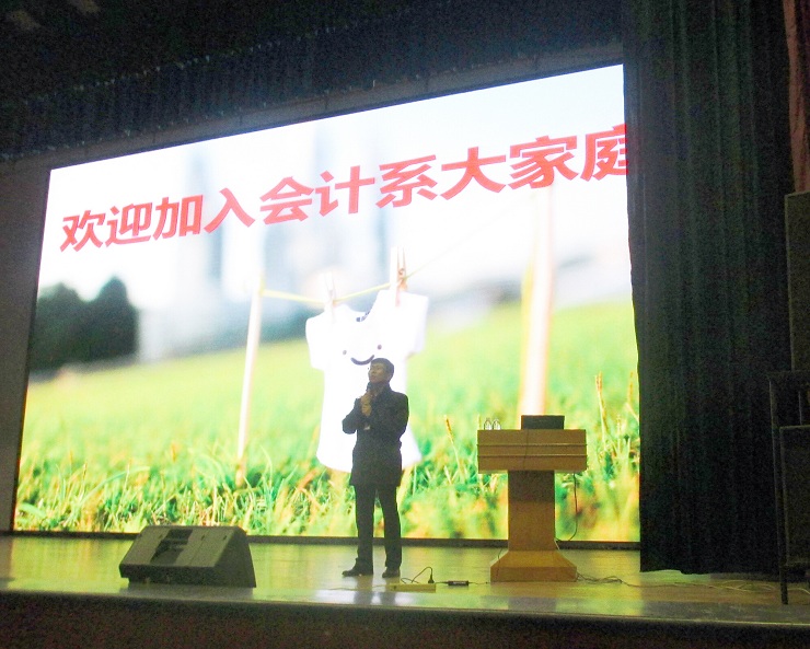 金秋十月,丹桂飘香。为做好2016级本科生入学教育工作,使他们尽快了解和适应大学生活,明确大学学习的目标和方向。10月9日晚上7点整,会计系2016级新生入学教育于思源会馆隆重举行。会计系行政秘书兼团委书记陈刚老师、会计系行政秘书刘锦老师、会计系副主任范新安博士、副主任毕鹏翾老师、会计系2016级新生辅导员老师以及全体2016级本科新生参加了此次报告会,报告会由范新安博士主讲、陈刚老师主持。