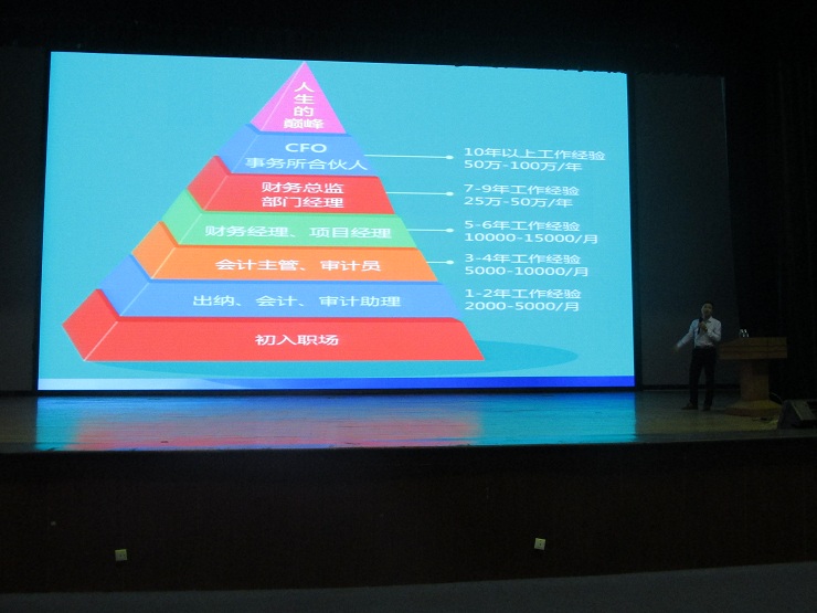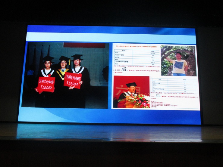 最后,范新安博士又以会计系往届优秀毕业生的成功事例鼓励同学们在新学期开好头、起好步、学会做人、学会思考、学会知识、学会技能,早日成才。这番语重心长的话语对在场新生触动很大,在大家热烈的掌声中,本次入学教育报告会圆满结束。