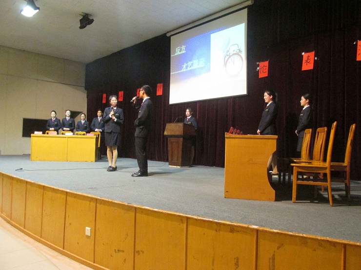 双方辩手你来我往,舌灿莲花,使得赛场气氛紧张而激烈。精彩绝伦的自由辩论环节将气氛推向高潮。辩手们巧舌如簧,能言善道,台下掌声不断。经过开篇立论,四遍盘问,二辩驳论,三辩质询,自由辩论这五个环节的激战之后,此次辩论表演圆满结束。最后,由主席作了辩论总结,并指出了此次辩论表演令人称赞之处。而随后有院辩论上届队长王君锋为小石榴们说明了辩论赛对同学们的思维逻辑拓展之处。会计系副队姚洋龙更是介绍了会计系辩论队各届的光辉历史,令同学们感触颇深。