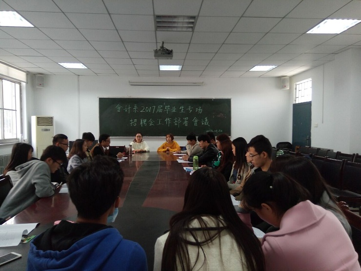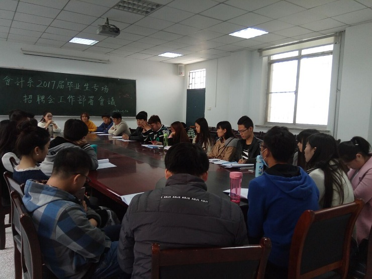 为了更好地拓宽毕业生就业渠道,也为了落实2017届会计系毕业生就业工作。10月25日中午12:10,会计系团学会于教学一号楼114会议室召开了会计系招聘部署大会。会计系行政秘书兼团委书记陈刚老师、团委副书记安琪、学生会主席安焱焱,社联理事长林佳波等主席团成员及各部门部长出席了此次大会。