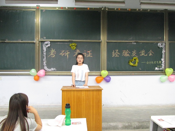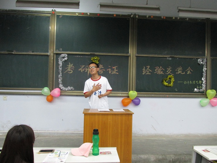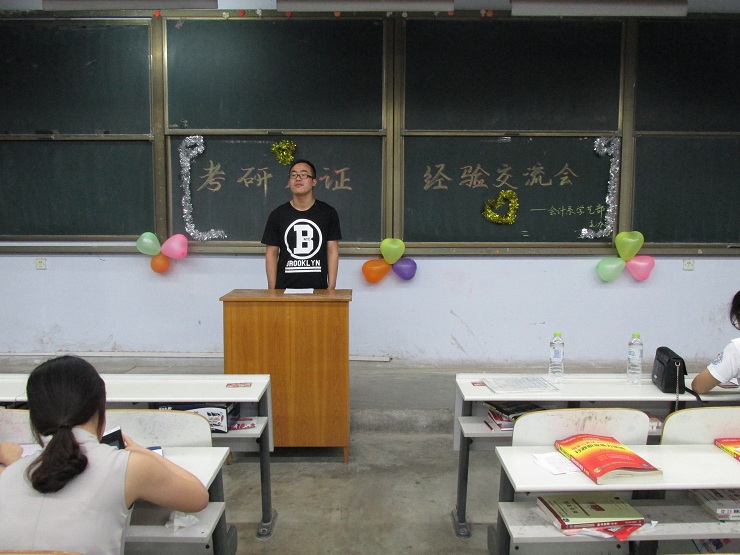 5月30日晚6:30,由会计系团委主办、会计系学艺部承办的会计系“考研考证经验交流会”在教学1号楼108教室如期举办。本次交流会由会计系14级会升本2班李晨歌、12级会本11班熊瑛、12级会本6班史丙元为在场的学弟学妹们分享考研经验、考证方法以及学习技巧。交流会现场激情洋溢,掌声不断。