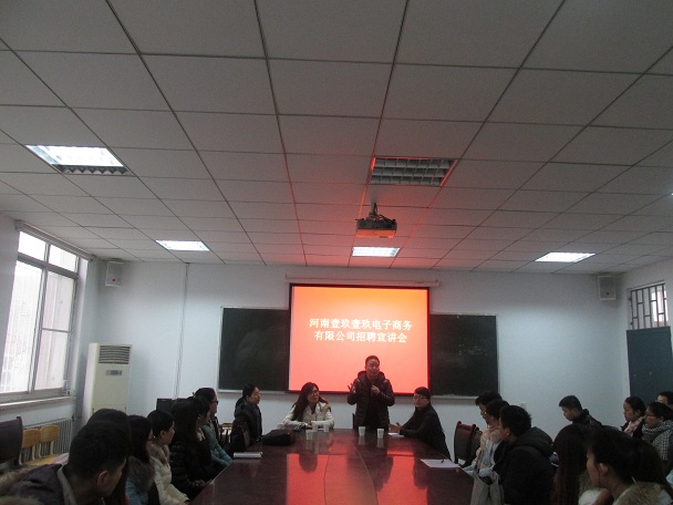 随后,由公司综合部经理张女士通过PPT的形式向师生们展示了河南壹玖壹玖电子商务有限公司。一家有时尚范、科技感与人文感十足的公司映入我们的眼帘。公司以高效、时尚、创新、开放为文化方向,办公场所3000多平米,员工2000余人,规模服务快捷,拥有十多个电商平台,具有良好的晋升与培训机制,由实习店员到店长助理,再到店长,福利待遇五险一金,假期、年终奖金一应俱全。希望我们的同学拥有学历的同时,具有优秀的团队精神、出色的个人能力、过硬的心里素质,一起打造共同的未来。