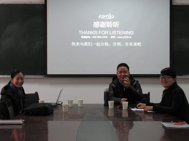 1月12日上午9:00,河南壹玖壹玖电子商务有限公司招聘宣讲会于会计一号楼114会议室如约举行。我院优秀校友河南壹玖壹玖电子商务有限公司苗国军董事长亲临现场招聘,会计系主任张欣副教授、会计系辅导员彭丽老师以及我系部分毕业生代表参加了此次宣讲会。会议由彭丽老师主持。