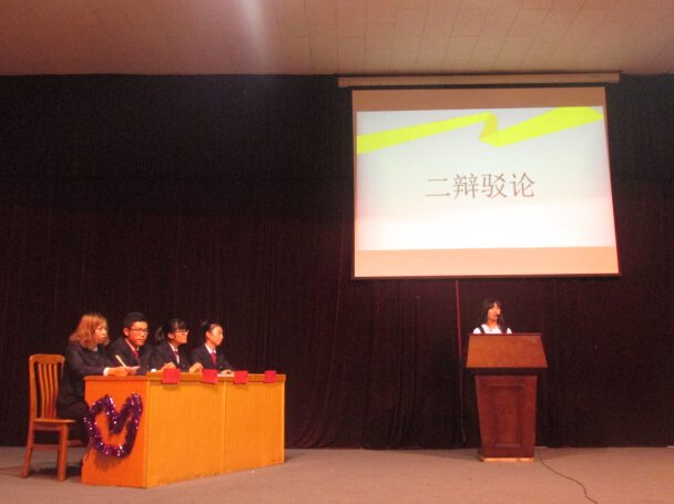 此次辩论表演赛由会计系学艺部组成两个队伍,正方辩手由张莉,姚明玉,姚龙洋,任晓涵组成,她们认为在爱情中,选择爱我的人更重要。反方辩手由刘芬,楚智文,王俊锋,李玮霞组成。双方辩手你来往,侃侃而谈,赛场气氛紧张而热烈。扣人心弦的自由辩论环节将气氛推向高潮,精彩不断,掌声连连响起。经过“开篇立论,四辩盘问,二辩驳论,三辩质询,自由辩论”五个环节的激战之后,此次辩论赛圆满结束。