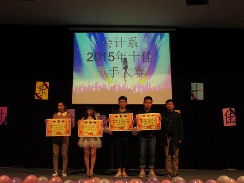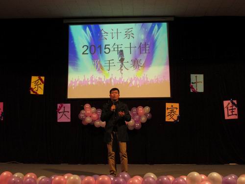 手握青春的麦克风,歌声唱响美丽升达园,为我们的大学生活添上绚丽色彩。4月14日晚6:30,由会计系团委主办,文艺部承办的会计系2015年十佳歌手大赛决赛在学院龙湖报告厅拉开帷幕。出席活动现场的嘉宾有会计系行政秘书兼团委书记陈刚老师、会计系14级辅导员林方老师、远洋老师,团委副书记王纯、书记助理杨博、孙静文,学生会主席刘乾坤、副主席陈晓林及团学会各兄弟部门代表。此次比赛的评委有河南省人民广播电台校园歌手大赛冠军、艺术系罗茜同学,12级会计系校园歌手大赛冠军罗勇、亚军刘媛,会计系社联副理事长李琦。我系14级400多名学生欢聚一堂,共享音乐盛宴。