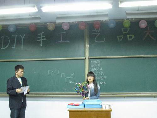为展现当代大学生的风采和活力,放飞同学们的激情和灵感,4月22日下午六点半,由会计系团委主办、会计系生活部承办的 “DIY手工艺品”制作大赛在教学一号楼111教室举行,到场的嘉宾有会计系团委副书记王纯,社联理事长夏凯,学生会副主席黄河,院手工艺协会社长董萌萌等。参赛学生们带着各自精心准备的工艺品积极来到现场,气氛活跃。
