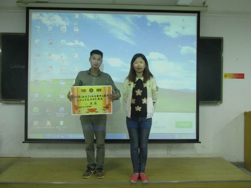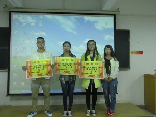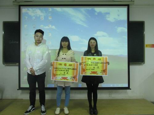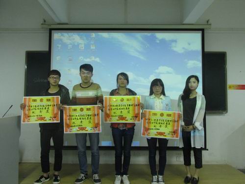 最后,团委副书记王纯对此次活动进行精彩的点评,对各个班级付出的努力给予肯定。同时,她给予建议,希望班级能够以更多的形式来展现班级凝聚力和班级精神,突出青春正能量。接着,各位评委根据此次活动的评分标准“创新”、“正能量”进行打分,评选出一、二、三等奖。最后,到场的嘉宾向获奖的班级颁发奖状和奖品,并合影留念。