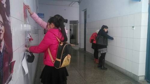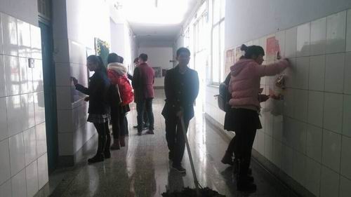 同学们使用抹布等工具清除公告栏上残留的胶带和杂物,还墙壁和公告栏一个干净的容颜。有些宣传海报粘贴较久,胶渍难以清除,大家就用手去一点一点的撕下来。在初春的冷风中,他们的手有些微微发红,可脸上却洋溢着满足的表情。大家分工合作,有人拿着拖把将地板拖的光亮,有人把会议室打扫的一尘不染。经过大家的努力,会议室变得干净明亮,一号楼的走廊也焕然一新。大家的热情温暖了整个校园。看着整洁的会议桌、干净的走廊,大家收获的不仅是喜悦,更多的是对志愿服务精神的深刻理解和体会。