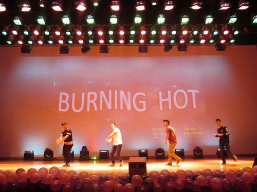 随后,整个晚会在掌声、欢笑声中精彩不断:由外籍老师JON和其指导的社团带来的巴西柔术不禁让同学们大开眼界;由我系守望你的宁听社团带来的情景剧《一路有你》可谓沁人心脾;舞蹈《落花情》、《越难越爱》舞姿优美轻盈;歌曲《我好想你》、《我们不是说好了吗》带领观众一同沉浸在音乐的海洋中;企管系魔术协会的友情魔术表演幽默滑稽、如梦如幻;我系综艺俱乐部、ERP沙盘协会带来的小品《如此道理》、《游戏梦工厂》、《升达大本营》令人忍俊不禁,他们用独特的方式向大家传递出一个简单而深刻的道理——团结就是力量,让同学们在欢笑之余也更好的领悟了团结的重要性;院精舞门带来的街舞《BURNING HOT》激情四射、极尽炫目;而由我系青志协带来的光影表演《紫色魅影》则创意新颖、标新立异,同学们用灯光和幕布描绘出一幅幅动态的升达学子成长画面,寄托着升达学子对母校的深厚感情,将整个晚会的气氛推向了高潮。最后,在优雅浪漫的歌伴舞《爱的华尔兹》中整场晚会完美谢幕。