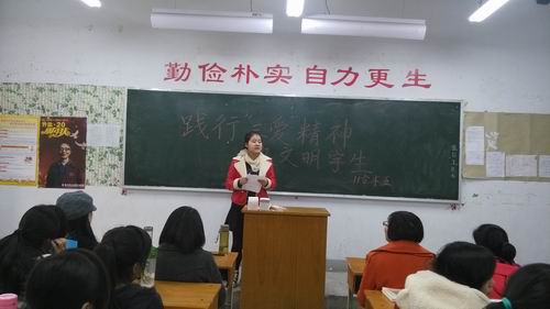 为提高大学生自身素质,积极响应学院号召,2013年11月21号下午2点,会计系学生第六党支部的各个班级在辅导员老师的带领下,在各班的主教室开展了以“践行“三爱”精神,做文明大学生”为主题的教育活动,各班同学都积极参加。