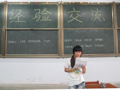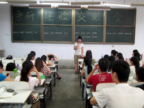 本次交流会共有两个环节,分别是经验传授环节和提问答疑环节。在经验传授环节中,他们真诚的向低年级同学分享了自己考研的经验,分别从数学 、英语 、政治 、专业课这四个方面分析了考研的准备工作和学习方法,重点强调要有计划,注重技巧,多动脑,勤动手,学习是要注意保持愉快的心情,找到适合自己的释放压力的方法。另外,他们还谈到考研的成功等于正确的方法加之不懈的努力以及恰当的复习资料,并讲述了考研初试和复试中应注意的问题和应掌握的技巧以及选择报考学校时应注意的问题,提出了合理化的建议。他们朴实的话语,清晰的条理,赢得了同学们阵阵热烈的掌声。