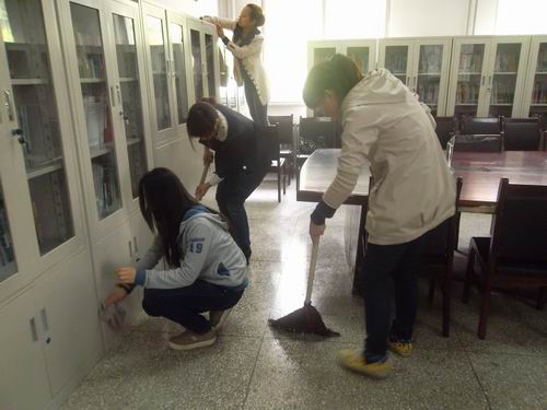 参加人员共分为六组,分别对系会议室、教职工办公室、走廊、公共大教室等区域进行了全面的打扫。他们热情高涨,不怕累,不怕脏,经过一个多小时的辛勤劳动,一片整洁的景象尽收眼底,受到了系教职员工和过往人员的普遍赞扬。