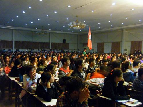 最后,郑州大学校际辩论赛“最佳辩手”获得者、会计系09级辩论队队长郑光辉同学还为大家介绍了会计系辩论队的成长历程,持续了近两个小时的表演赛在同学们热烈的掌声中落下了帷幕。