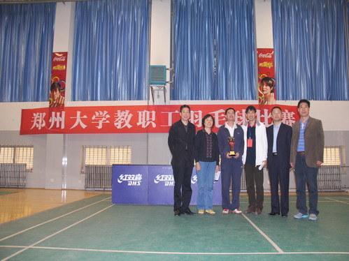 由郑州大学工会组织的2012年教工羽毛球比赛于10月16-20日在新校区中心体育馆举行,此次共36个队,400余名队员参加。经过80多场比赛,比赛圆满落下帷幕。本次比赛规模大,水平高,竞争激烈,具有观赏性。在党政领导的关怀和支持下,我院教工羽毛球男女队员,积极备战,刻苦训练,努力拼搏,取得了优异成绩,使其他参赛队为之一振,大开眼界。