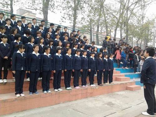 比赛伊始,12级学子们整齐地站在看台上,他们一个个精神抖擞,激情高涨。他们紧跟音乐的节拍,把《精忠报国》、《地道战》、《我的中国心》等二十六首经典红歌唱的铿镪有力,唱出了对祖国的爱、唱出了自己的爱国情结,唱出了新一代青年人应有的坚韧气节和磅礴气势。
