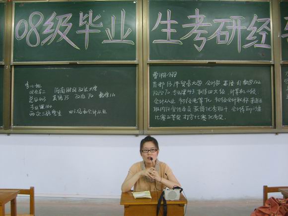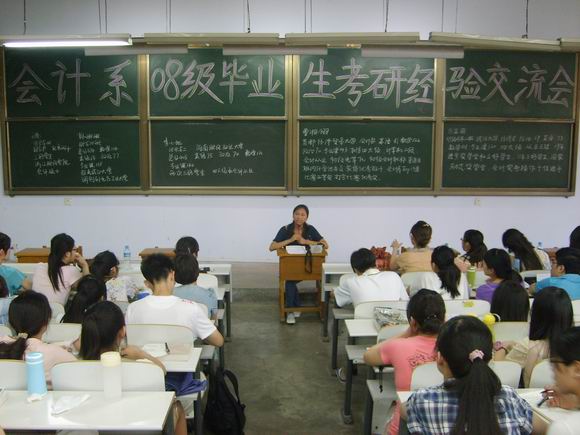 在会计系教师的的精心辅导和学生的辛苦努力下,2012年的考研会计系再创佳绩,有51位同学如愿以偿考取包括首都经贸大学、武汉大学等国内知名高校在内的研究生。为了学习经验的传承,让低年级学生在未来考研的道路上走的更稳、走的更远,会计系财务管理教研室于6月12日下午16:40在教学一号楼108教室组织举办了2012届会计系毕业生考研经验交流会。