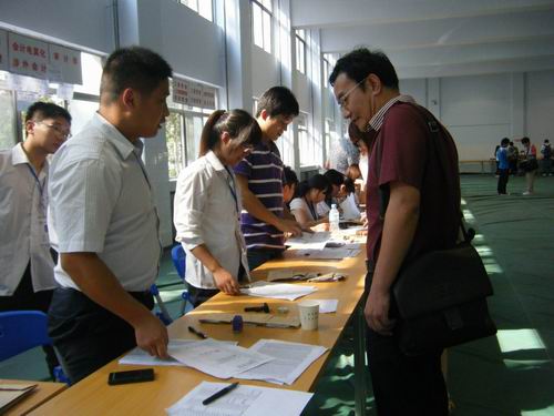 早在9月5日,迎新工作就已提前开始,我系已经迎来了400余名新生,而今天,更是迎来了新生报到的高潮。根据工作需要,我系共设了思源会馆西侧、体育馆门前、体育馆大厅、体育馆北门、思源会馆东门五个工作点,为了安排充足的人力做好迎新工作,我系还从2011级各班征集了迎新志愿者,协助搬运行李物品,为家长和新生提供全方位的服务。