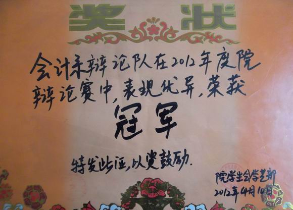 一个多月以来,在系领导的关怀和大力支持下,我系辩论队同学利用课余时间甚至晚上、周末加班加点、刻苦备战,积极请教老师和往届辩论队同学,观看各高校精彩的辩论视频,他们发扬不怕苦不怕累的精神,从辩论礼仪、语言表达和应用、辩论的应用技巧等方面进行了系统的学习,最终取得了胜利,辩论赛中我系辩手的精彩表现展示了会计人的风采,为我系争得了荣誉。